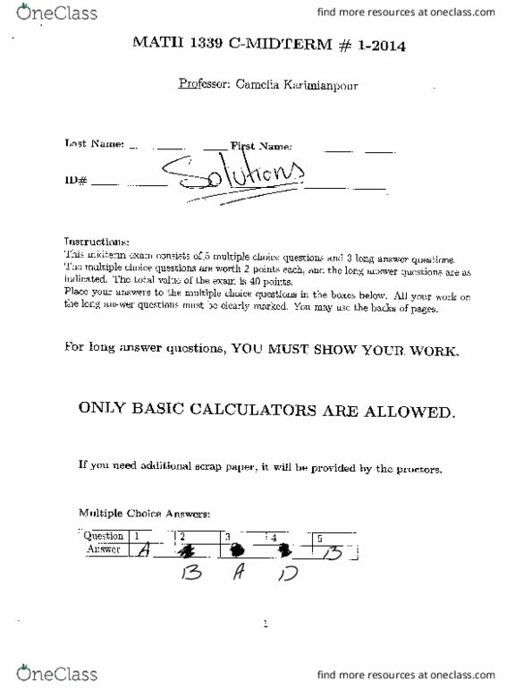 Study Guides For Mat 1339 At University Of Ottawa Uottawa Oneclass