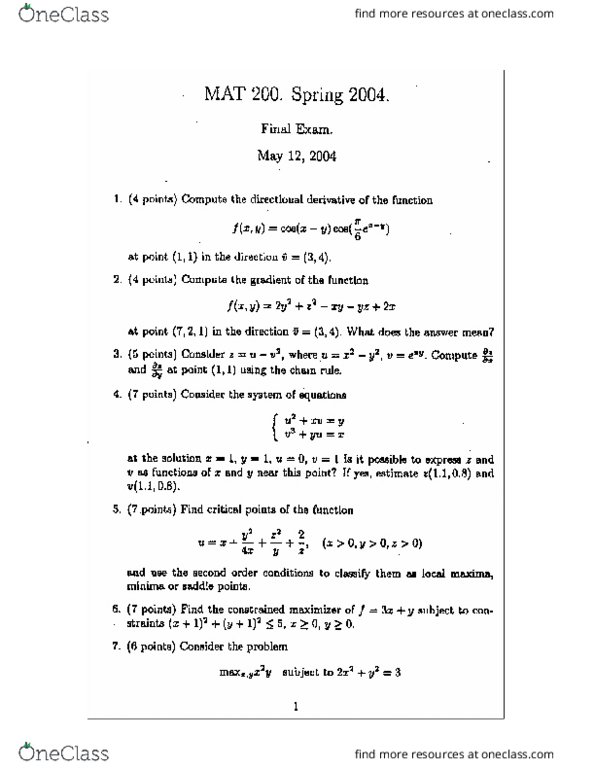 Certain courses are prerequisites and should be taken early on. Mat 330 complex analysis with applications spring qcr the theory of functions of one complex variable covering power series expansions residues contour integration and conformal mapping. Fourier series and partial differential equations professor sergiu klainerman problem set 2 rik sengupta rsengupt princeton edu. Students who expect to take mat201 or 203 should sign up for mat nfo2.