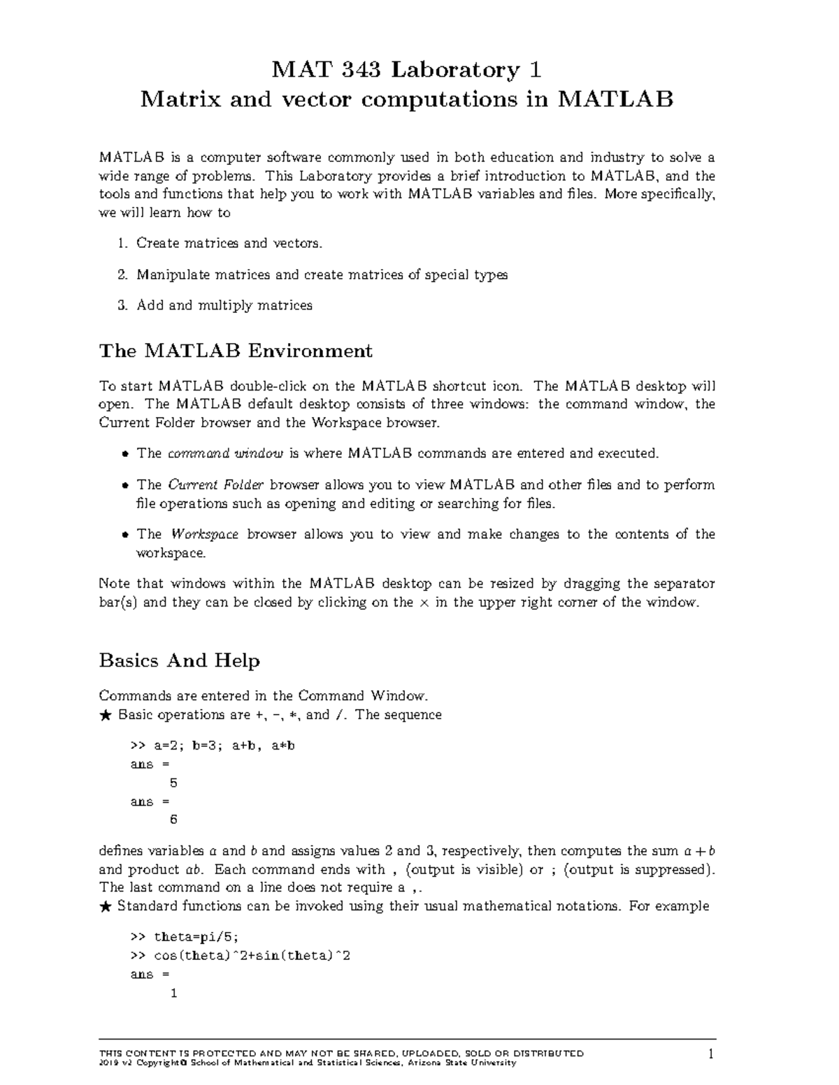Stefania tracogna email address. 12 00pm 1 00pm catalog description solving linear systems matrices determinants vector spaces bases linear. Applied linear algebra mat 343 summer 2014 register now mat 343 matlab lab 5 docx. Bennett lab2 arizona state university applied linear algebra mat 343 fall 2019.