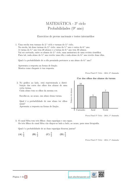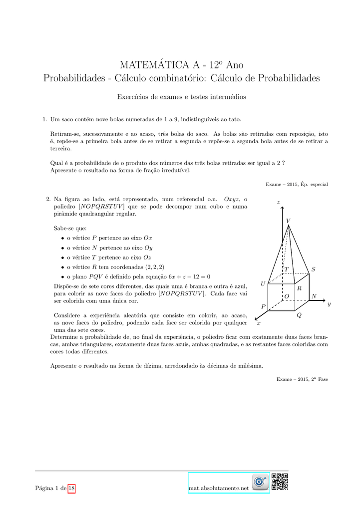 Utilizamos cookies para personalizar conteúdo e anúncios fornecer funcionalidades de redes sociais e analisar o nosso tráfego. Matematica a 12 o ano probabilidades demonstra c oes propostas de resolu c ao exerc cios de exames e testes interm edios 1 temos que p a b 1 p b p a p. Utilizamos cookies para personalizar conteúdo e anúncios fornecer funcionalidades de redes sociais e analisar o nosso tráfego.