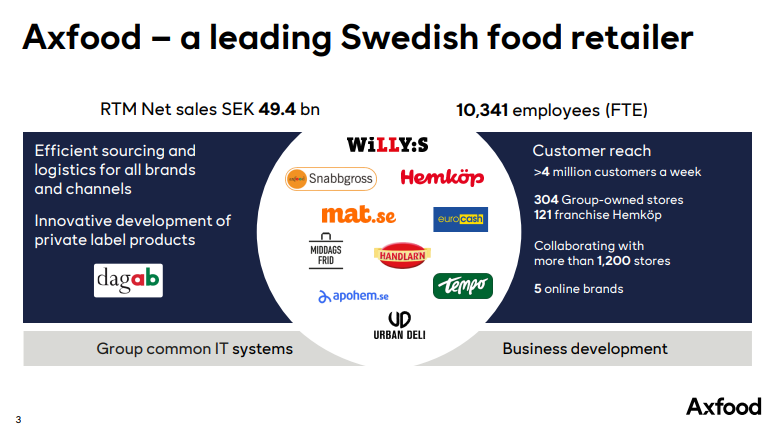 Axfood is a long term sustainable and profitable player in the swedish food retail market. Vi vill skapa en bättre vardag där alla kan dela glädjen för prisvärd bra och hållbar mat. Läs mer på www axfood se. Axfoodkoncernens styrka är att utveckla och driva framgångsrika varumärken på den svenska matmarknaden.