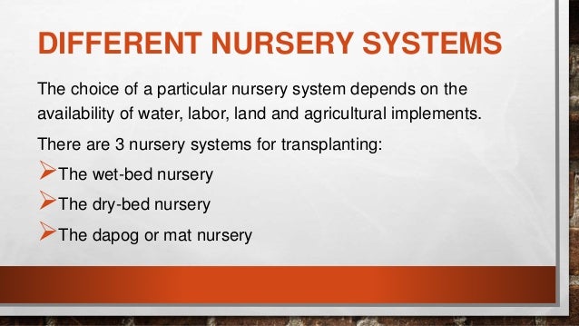Mat type nursery is related to which crop. The dapog or mat nursery. Provide protections to workers and handlers from potential pesticide exposure train them about pesticide safety and. Provide mitigations in case exposures may occur. Underground storage tanks that are not excluded must meet regulations related to design construction installation notification monitoring operating release detection reporting to state or federal regulatory agencies owner record keeping corrective action closure and financial responsibility.