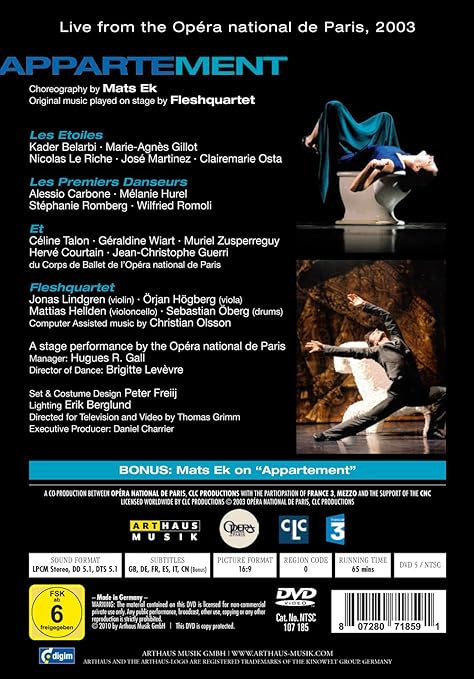 Legendary swedish choreographer mats ek s ballet was created for the dancers of the opera national de paris and is here danced by star names including nicola. Arthaus presents the ballet appartement of the legendary swedish choreographer mats ek which he created for the soloist dancers of the opéra national de paris the ballet is set to the music of the swedish rock band fleshquartet performing live on stage. Fleshquartet have recently garnered acclaim as the instrumentalists behind the wallander theme tune. Appartement a ballet by mats ek ek belarbi gillot riche martinez osta release date.