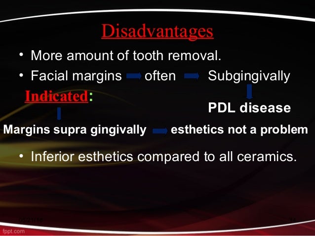 Weighing up the advantages and. The single disadvantage of an all metal is the obvious. The crown can be prone to chipping or a fracture. Pfm s pfm crown advantages disadvantages pfm s offer a long tested track record.