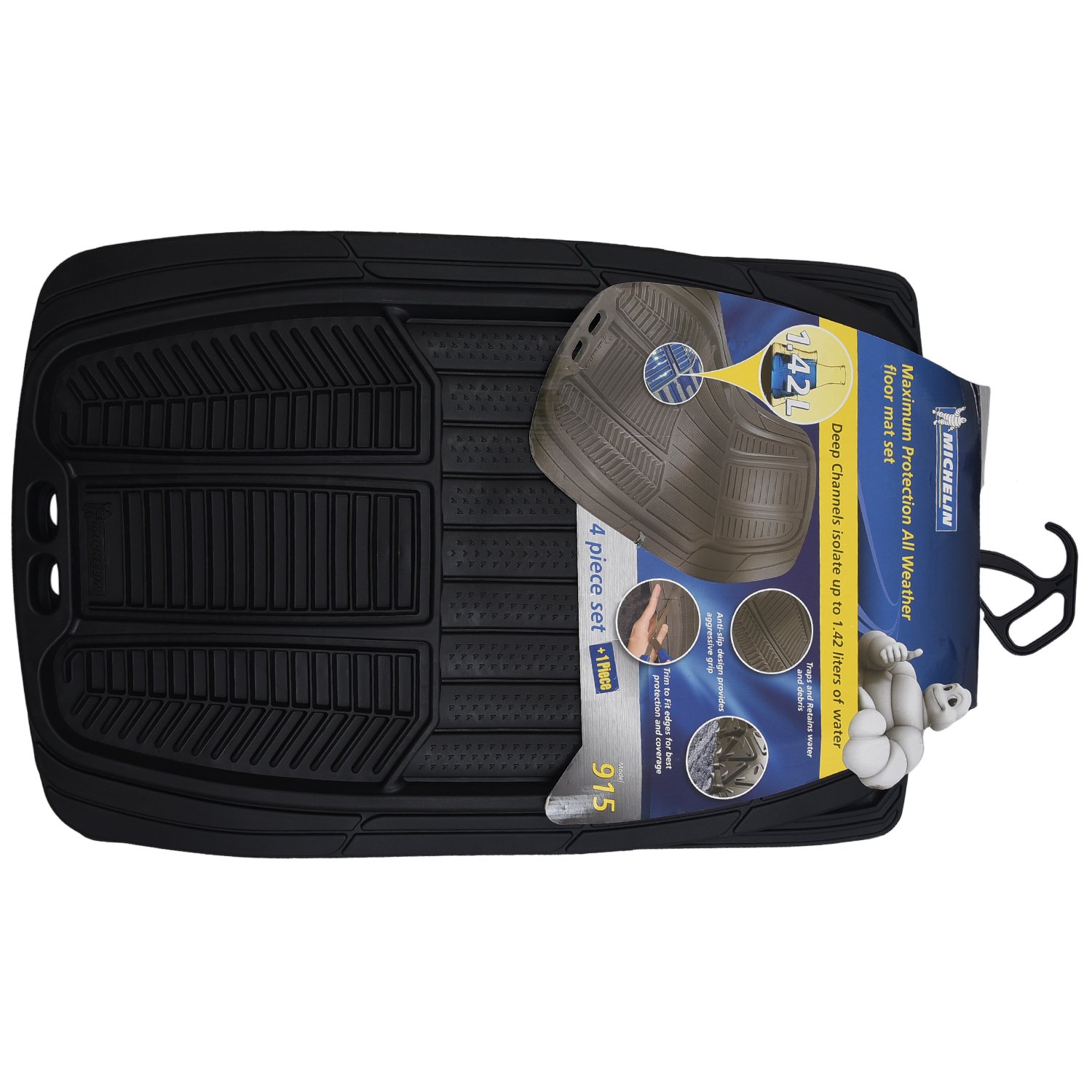 Michelin all weather floor mat set features a channeled design that catches water and debris and directs it away from clothing and carpet universal fit is designed to fit most vehicles flexlines allow mats to conform to the contours of the vehicle. Easy to trim for a custom fit. 4 5 out of 5 stars 9 512. The michelin all weather 4 piece rubber floor mats set includes two fronts and two rears designed to protect your vehicle s flooring from spills mud snow rain and debris.