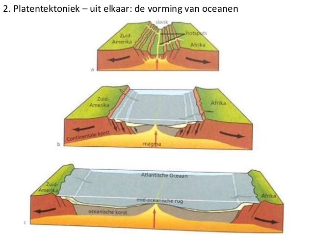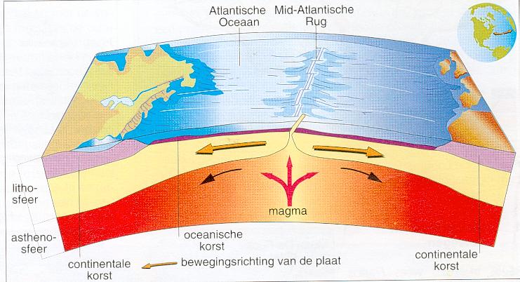 De mid atlantische rug is het mooiste voorbeeld van zo n divergente plaatrand. De ouderdom neemt toe naarmate men verder van de mid oceanische ruggen is verwijderd. De atlantische oceaan begon zich ongeveer 160 miljoen jaar geleden te vormen door het opbreken van het oercontinent pangea. Platen in de aardkorst volgens de platentektoniek.