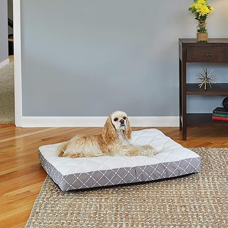 The midwest quiet time fleece reversible pet bed crate mat is made with ultra soft synthetic fur on one side. The midwest cushioned crate mat is one of the versatile items we offer. The sides are lined in a floral print fabric you ll love. It s designed to fit perfectly in standard crates so it can be used as a comfy bed by itself or as an extra support pad under an existing dog bed.