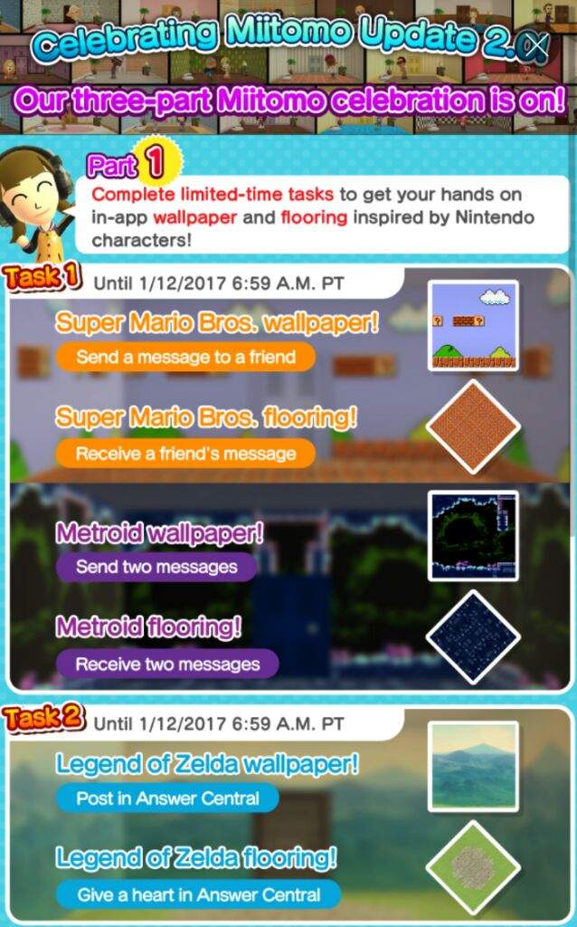 Miitomo mario flooring. Tv show who would you cast as mario room flooring. Super mario run items available in miitomo drop. We take a tour of all the new super mario run content in miitomo including new wallpaper and floor the new boo goomba buddy accessories as well as costumes for peach bowser toad costumes. The app nintendo s first allowed users to converse with friends by answering various questions and featured twitter and facebook integration.