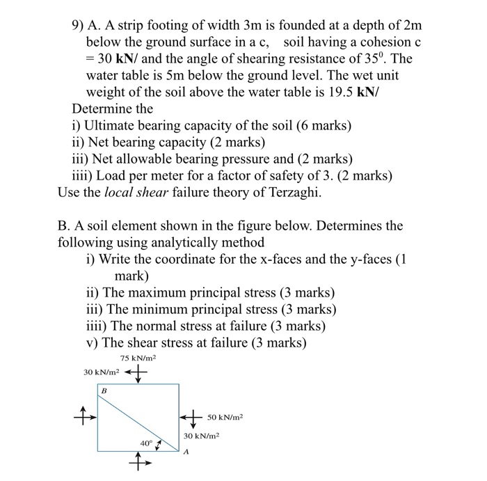 Minimum bearing capacity for strip footings adding a second floor. Find nearby slab and foundation contractors to help with your footings. Determine allowable bearing capacity and width for a shallow strip footing on cohesionless silty sand and gravel soil loose soils were encountered in the upper 0 6 m 2 feet of building subgrade. Bearing pressure from building 144 kn m 2 3000 lbs ft 2. Where unusual conditions exist the spacing of piers and pier size and the load bearing capacity of the soil shall be determined specifically for such condi tions.