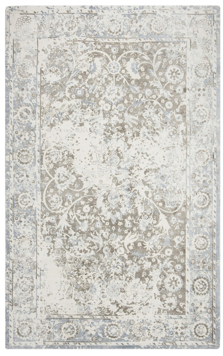 The primary color is beige. With lustrous tone on tone motifs illuminating a satin soft viscose pile mirage floor coverings emulate the indulgent look and high touch feel of silk. Easy to clean stain resistant and does not shed. Only 2 left in stock order soon.