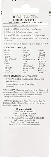 Monteverde ceramic gel refill review. This new monteverde usa capless ceramic gel refill allows you to convert your ballpoint pen into a capless rollerball. Now all my parker style ballpoint pens can use smooth broad point gel inks. Monteverde capless ceramic gel refill for parker pens blue p442bu monteverde ballpoint refill to fit parker ballpoint pens super broad point soft roll black 2 per pack p152bk schmidt 9000 easy flow hybrid ballpoint refill medium black 2 pack blister sc58143. Thanks for this review.
